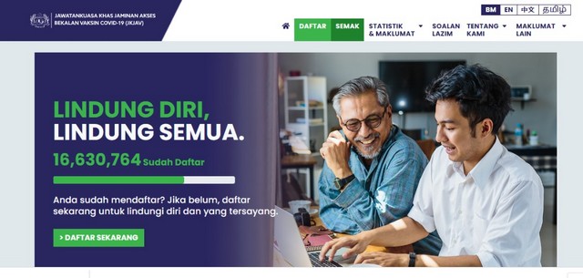 - Bimbingan membuat pendaftaran vaksinasi menerusi laman sesawang Jawatankuasa Khas Jaminan Akses Bekalan Vaksin Covid- 19 (JKJAV) secara atas talian